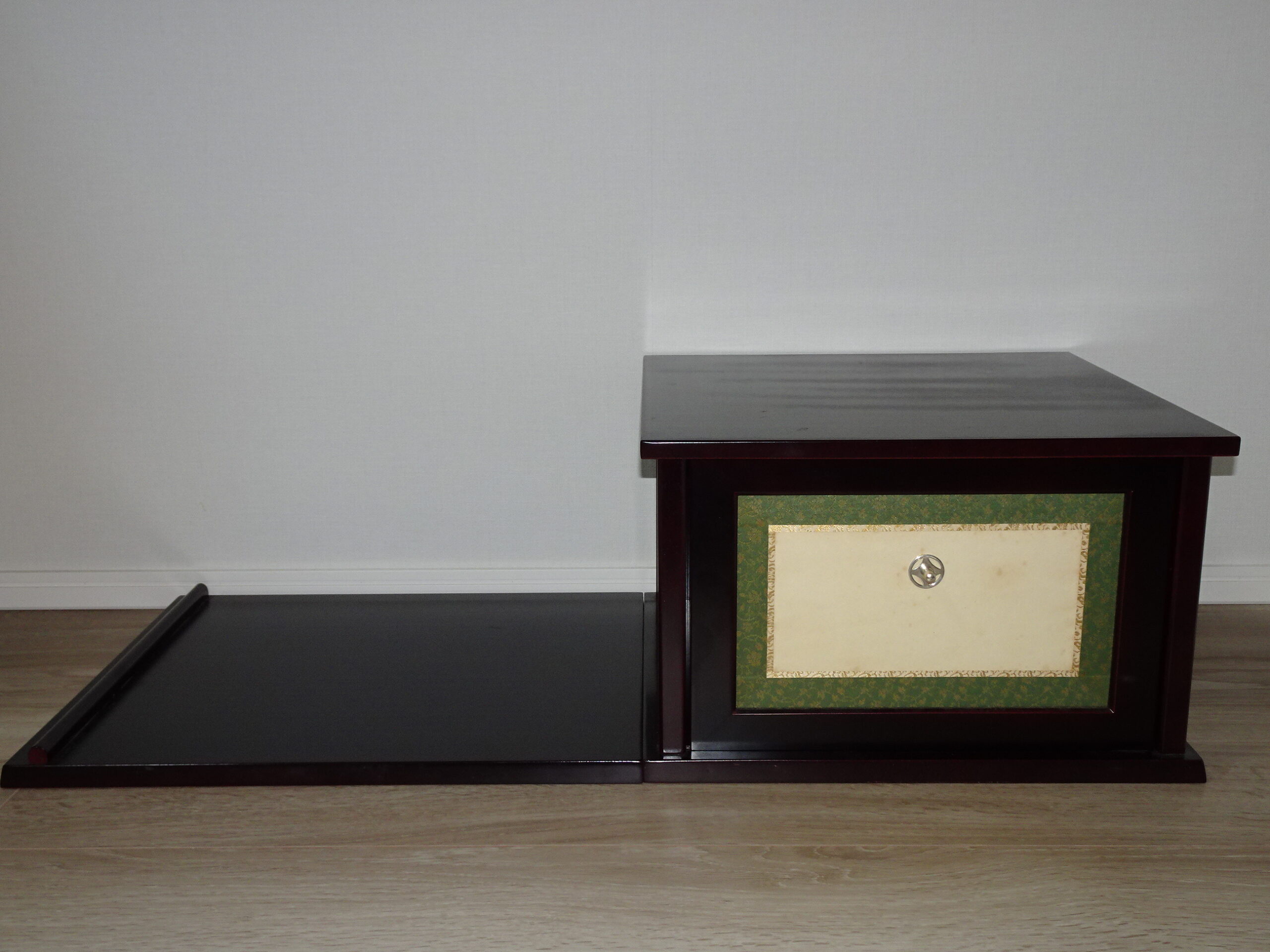 棚は茶道具を飾るためのもので、中国の台子が原型といわれている。大棚と小棚に分けられ、大棚は紹鴎袋棚、及台子、長板、小棚は高麗卓、山里棚、二重棚、三重棚、旅箪笥、桑小卓などが代表的。材質は、桐、欅、松、竹、梅などで、木地、真塗、溜塗などの種類がある。棚は広間専用の道具なので、小間では使用しない。